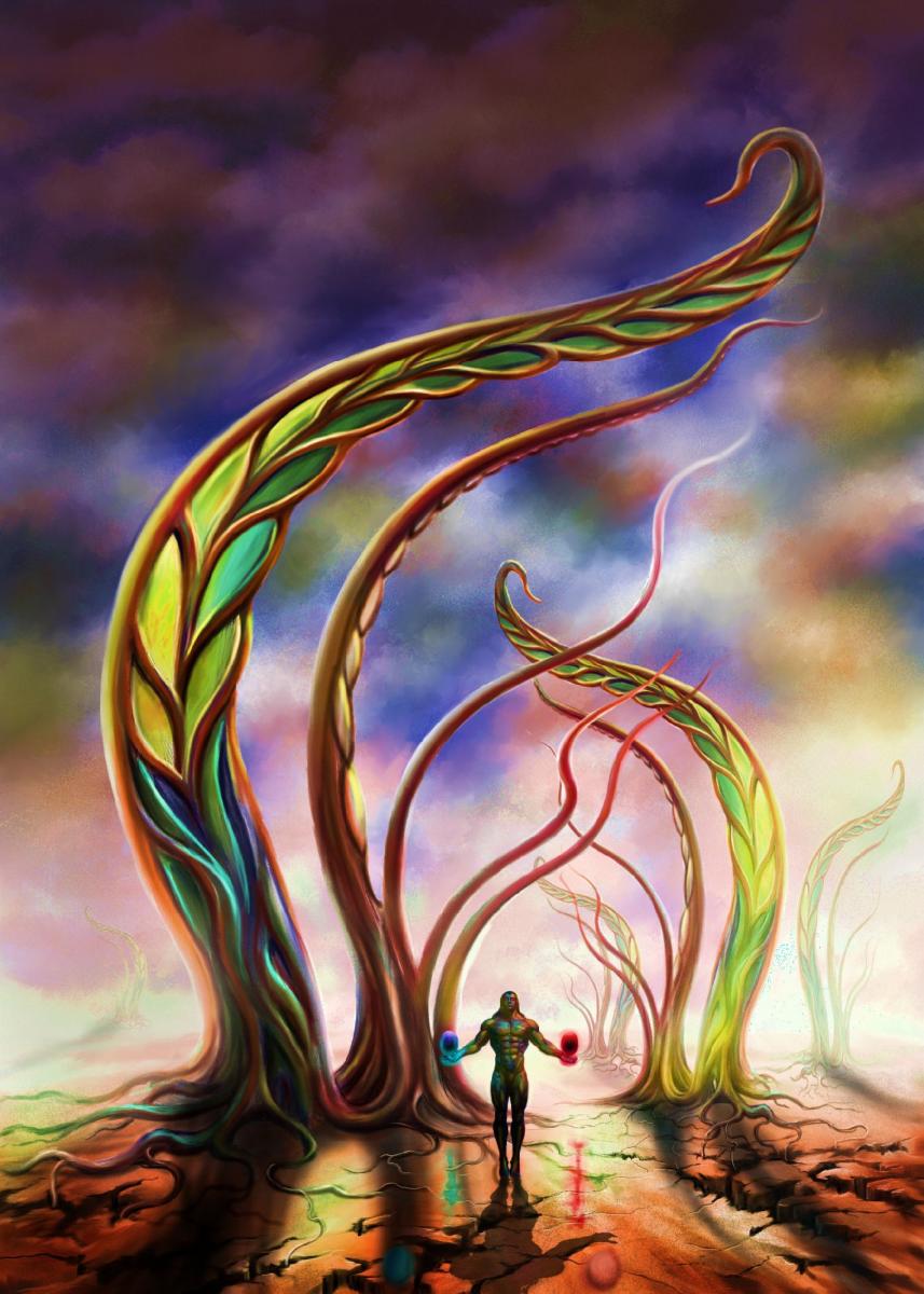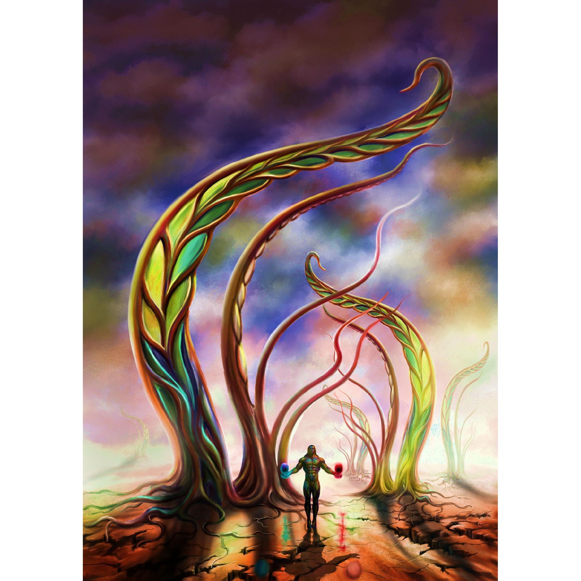 Il dipinto rappresenta "Alberi Fantastici", che è un mio tema ricorrente anche nelle mie ultime sculture !