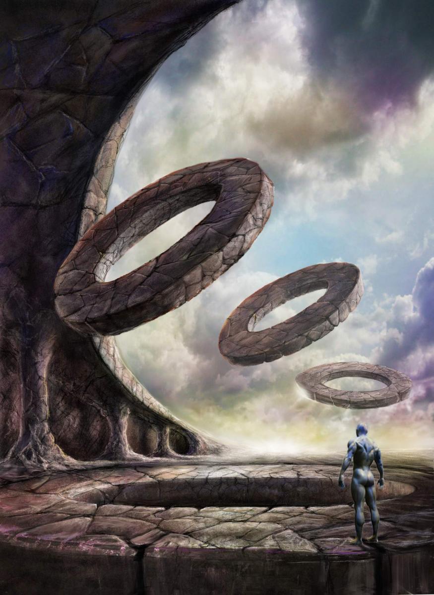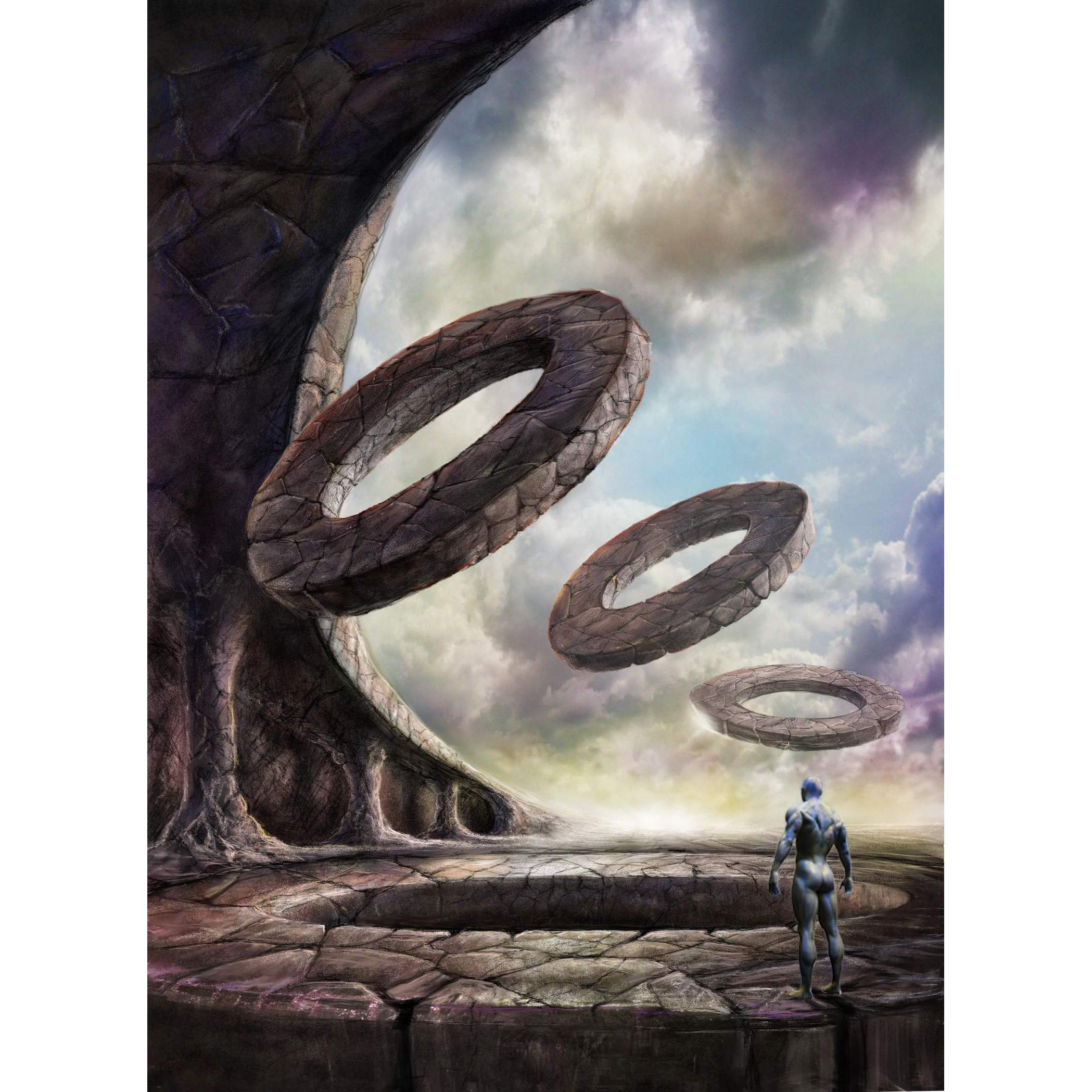 Il "Pozzi" in primo piano è l'emblema del mistero ... Cosa nasconde nella sua profondità abissale? ... Anelli in pietra aleggiano senza peso al di sopra di esso, ed un essere cibernetico è l'osservatore di questo mondo distopico ! . ©Plauso 2026
