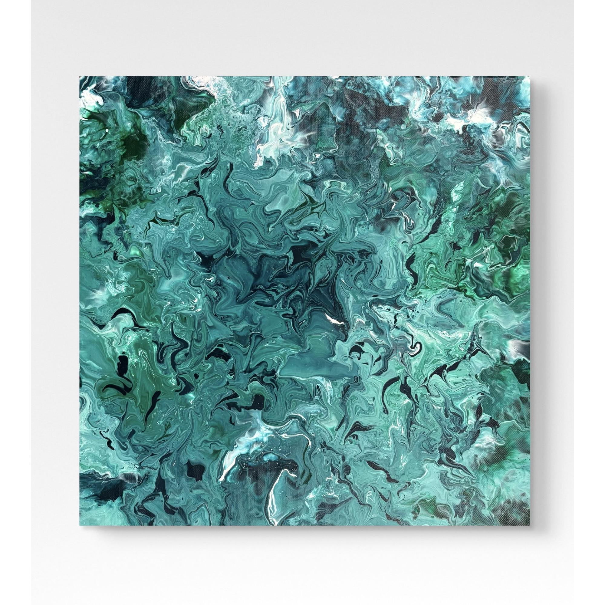 Ispirato alla mia amata sardegna, l’opera riprende il colore delle sue acque: uno smeraldo che incontra il turchese, il verde. L’opera racconta le sfumature dell’acqua sarda, a volte più scura a volte più chiara in cui si intravedono pesciolini blu scuro. La guardo e mi viene voglia di tuffarmi tra le sue onde.