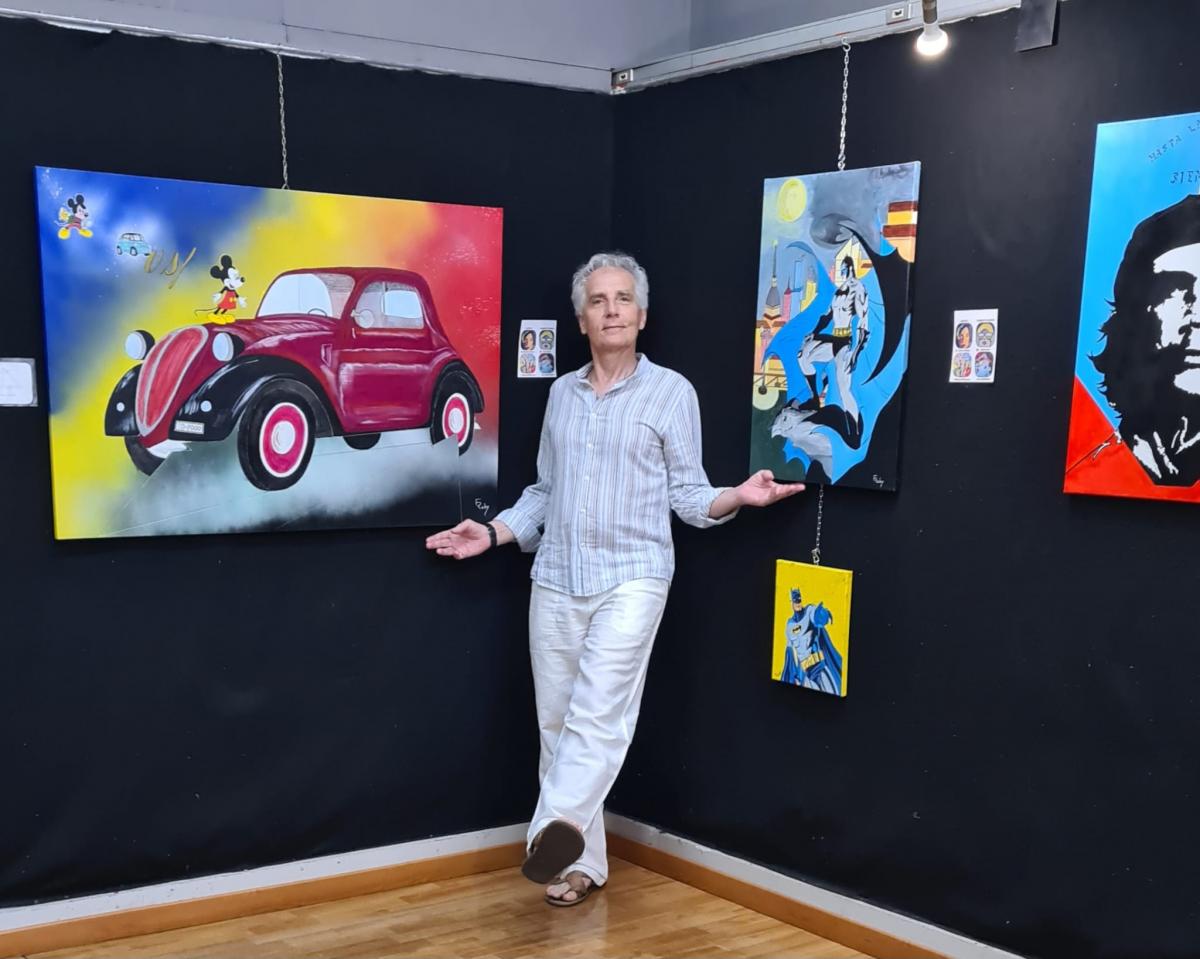 In fine,complice anche l’influenza della sua compagna, sempre da autodidatta siriavvicina alla pittura utilizzando questa volta tele pennelli e coloriacrilici.