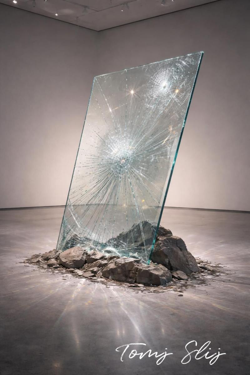 Une plaque de verre brisée émerge comme un puissant symbole de la fragilité des structures sociales et de la précarité des vies humaines. Cet élément, qui peut sembler banal, se transforme en un artefact de signification profonde, défiant les spectateurs de se confronter aux dures réalités de notre existence partagée.