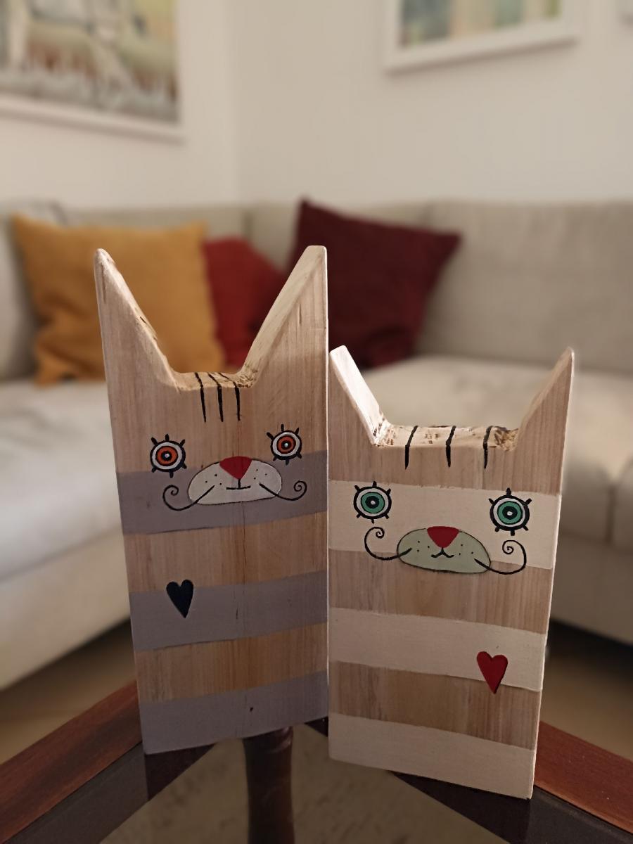Coppia di gatti grandi, artigianato artistico, pezzi unici realizzati interamente a mano.