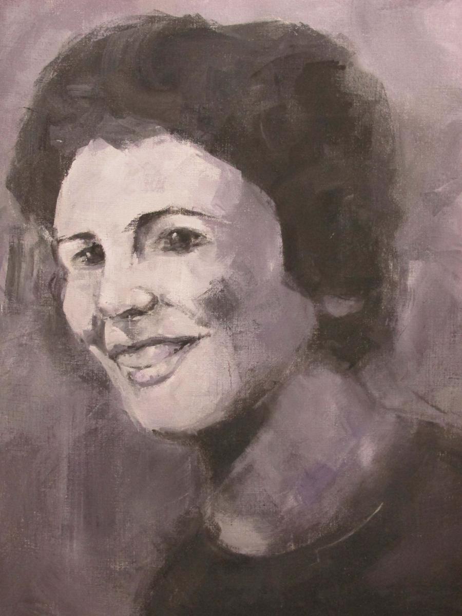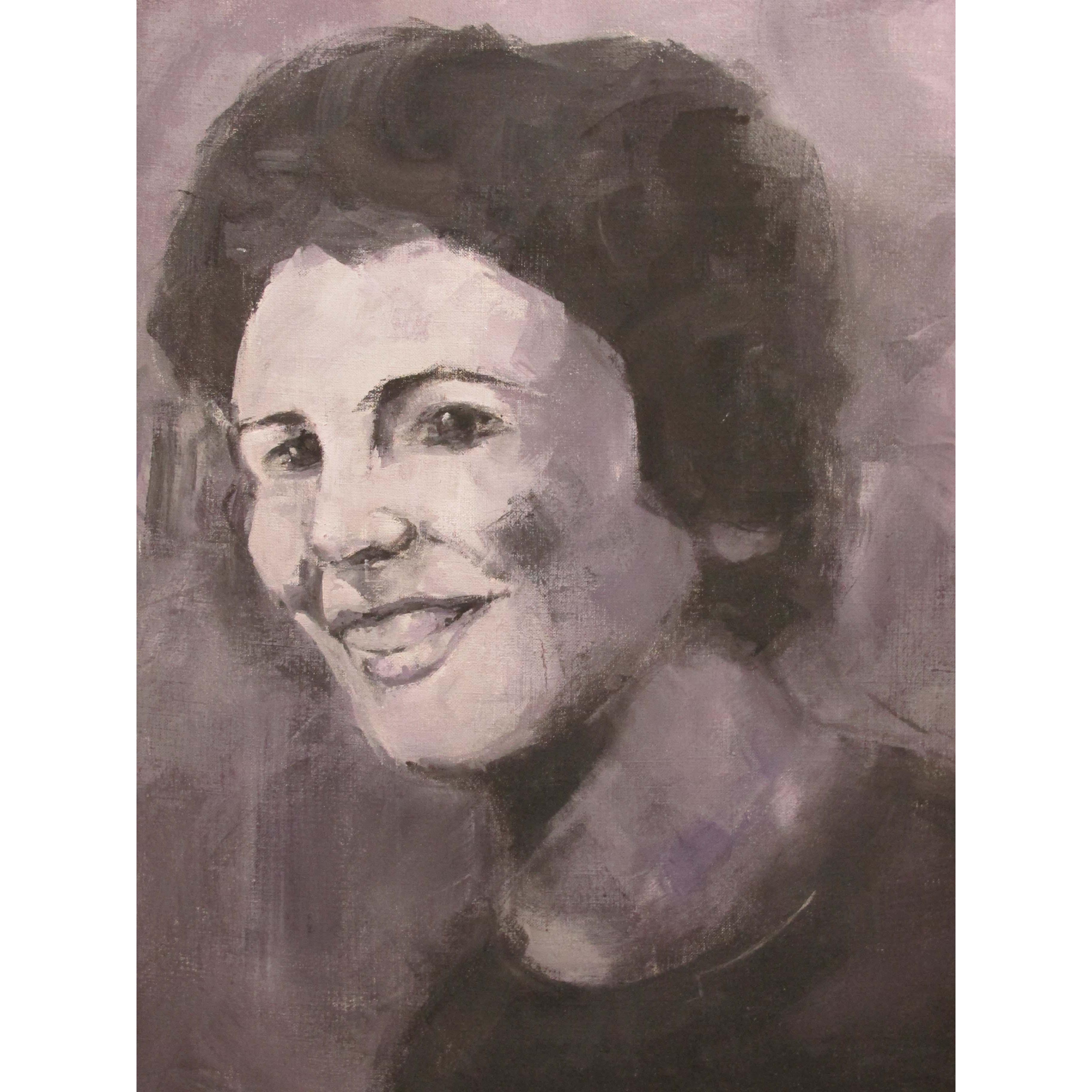 Questo dipinto è un ritratto realizzato partendo da una vecchia piccola foto degli anni '60, in bianco e nero, ritraente la mia nonna materna.