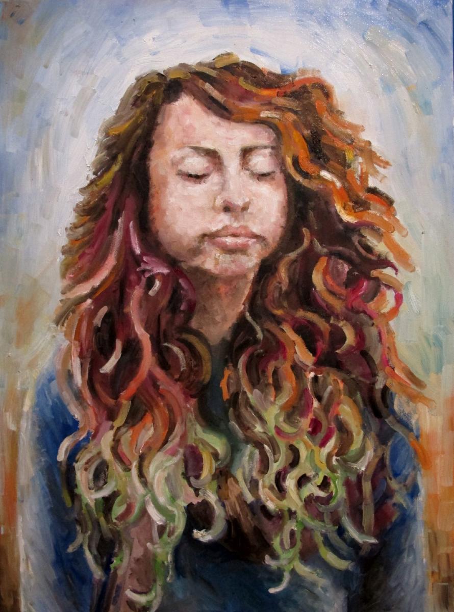 Dipinto che ritrae un'amica di molto tempo fa, dedicato alle persone speciali che portano il fuoco nel cuore.