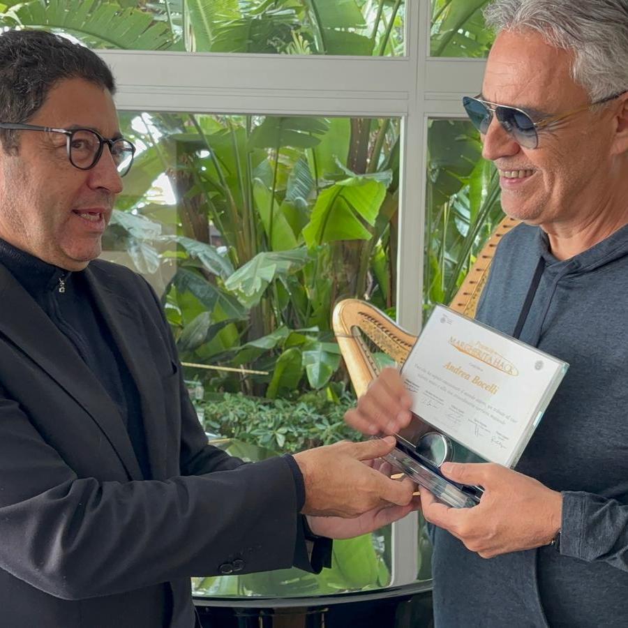 Salvo Nugnes conferisce il Premio Margherita Hack ad Andrea Bocelli