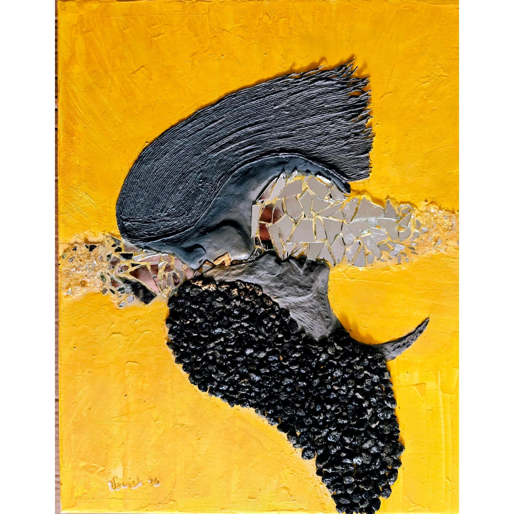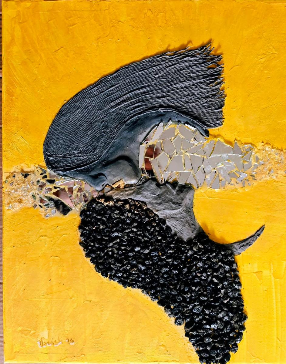 Pasta modellabile ,pietre vulcaniche,Filati di cotone,specchio ,acrilico, resina uvL' Io e l' Es propone una visione integrata dell’esistenza: l’equilibrio non nasce dalla dominazione di una parte sull’altra, ma dall’ascolto profondo e dall’armonia tra le diverse dimensioni dell’essere. L’opera diventa così uno spazio di contemplazione, dove il conflitto si trasforma in dialogo e la frammentazione in possibilità di integrazione .Il bacio in fronte è un atto silenzioso di riconoscimento, un gesto che non chiede nulla e non possiede, ma protegge e benedice.