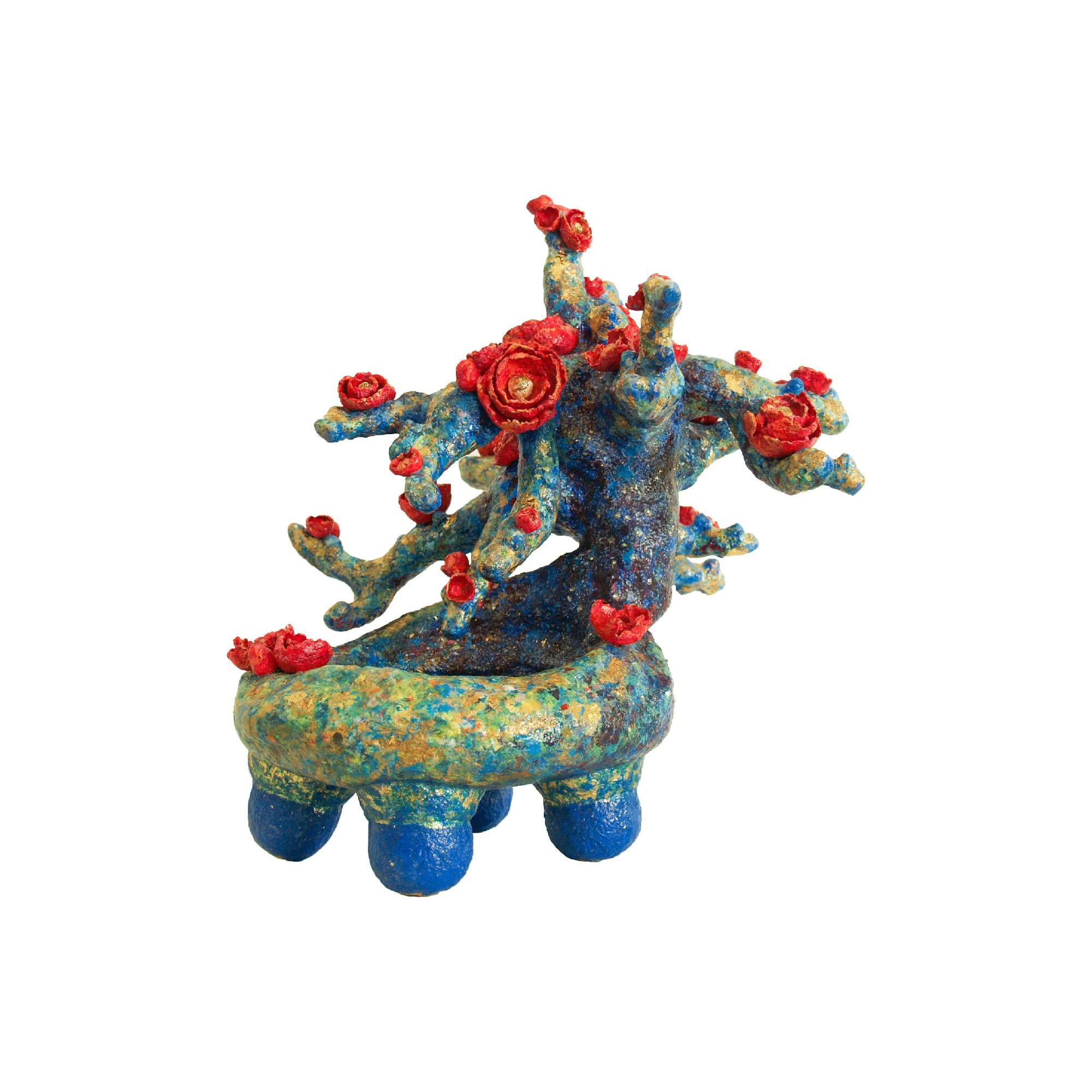 La carta pesta è un'antica tecnica artistica che utilizza la carta per creare sculture tridimensionali, e questo albero svuota tasche con diversi fiori rossi, realizzato completamente a mano con cura e attenzione ai dettagli, è il risultato di ore e ore di lavoro e dedizione usando questa bellissima procedura.