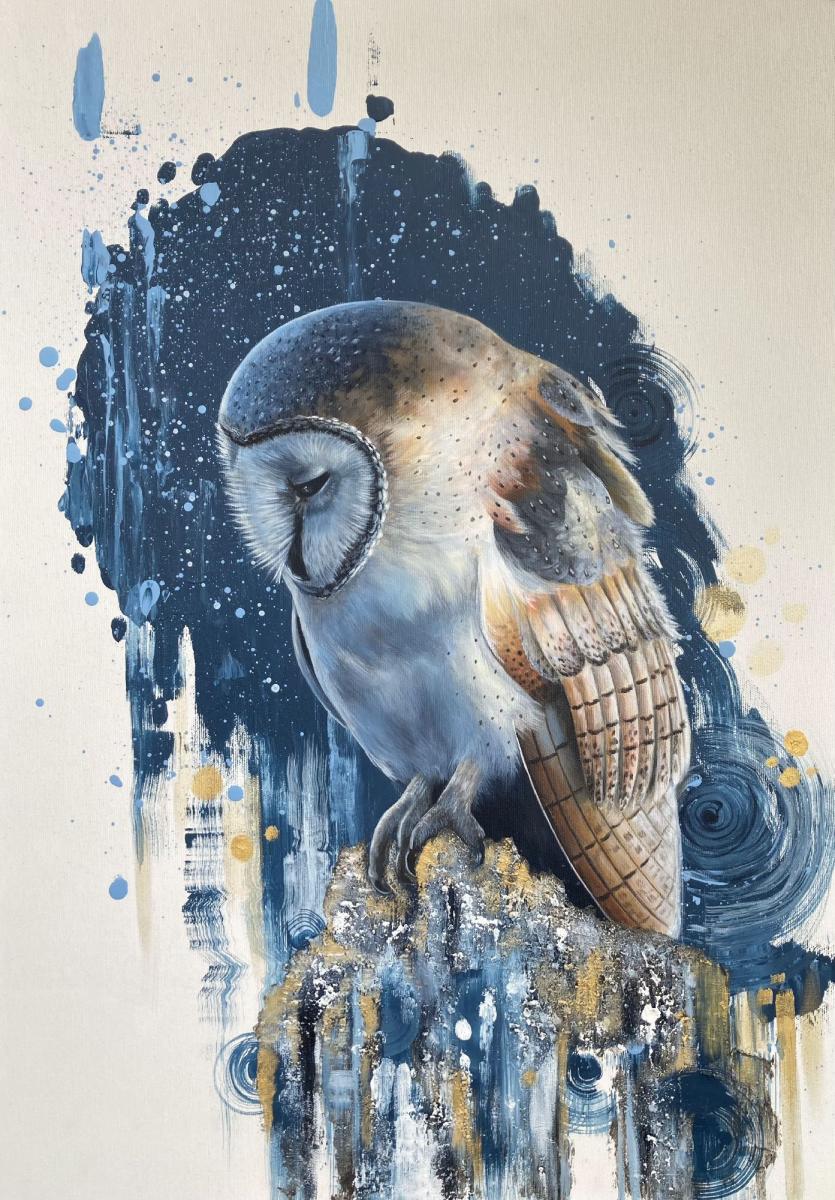 Per il posatoio del barbagianni ho utilizzato della cenere mischiato ad un medium gel, per dare un affetto in rilievo.
