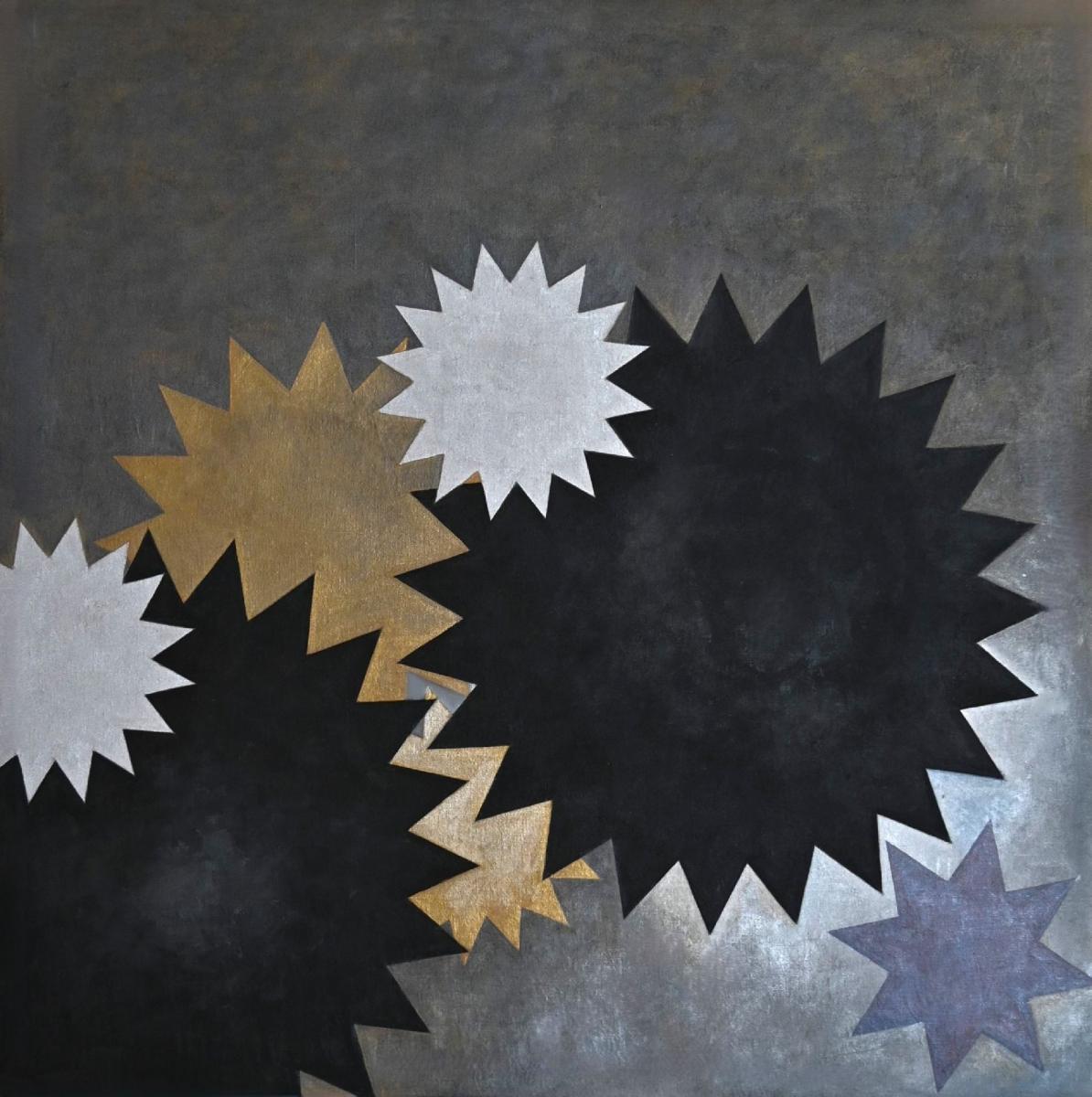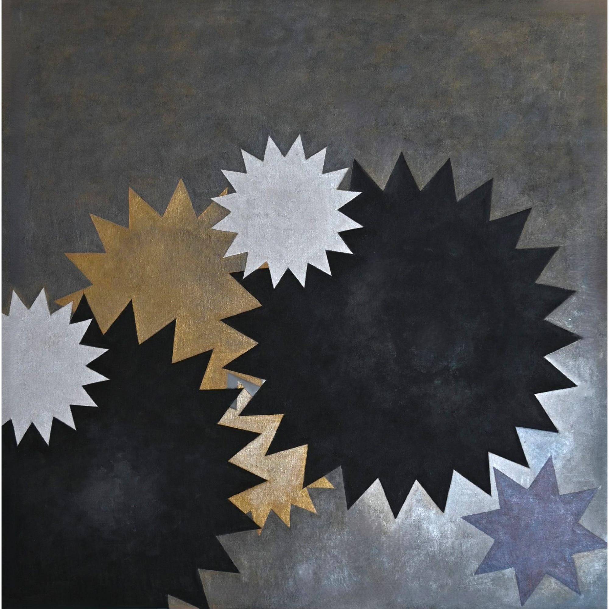 Le formericordano tanto gli ingranaggi di un orologio interno quanto corpi celesti incollisione o allineamento. La precisione delle linee delle stelle contrasta conla stesura più libera e sfumata del fondo, suggerendo un dialogo tra l'ordine(la geometria) e il caos (lo sfondo indistinto).