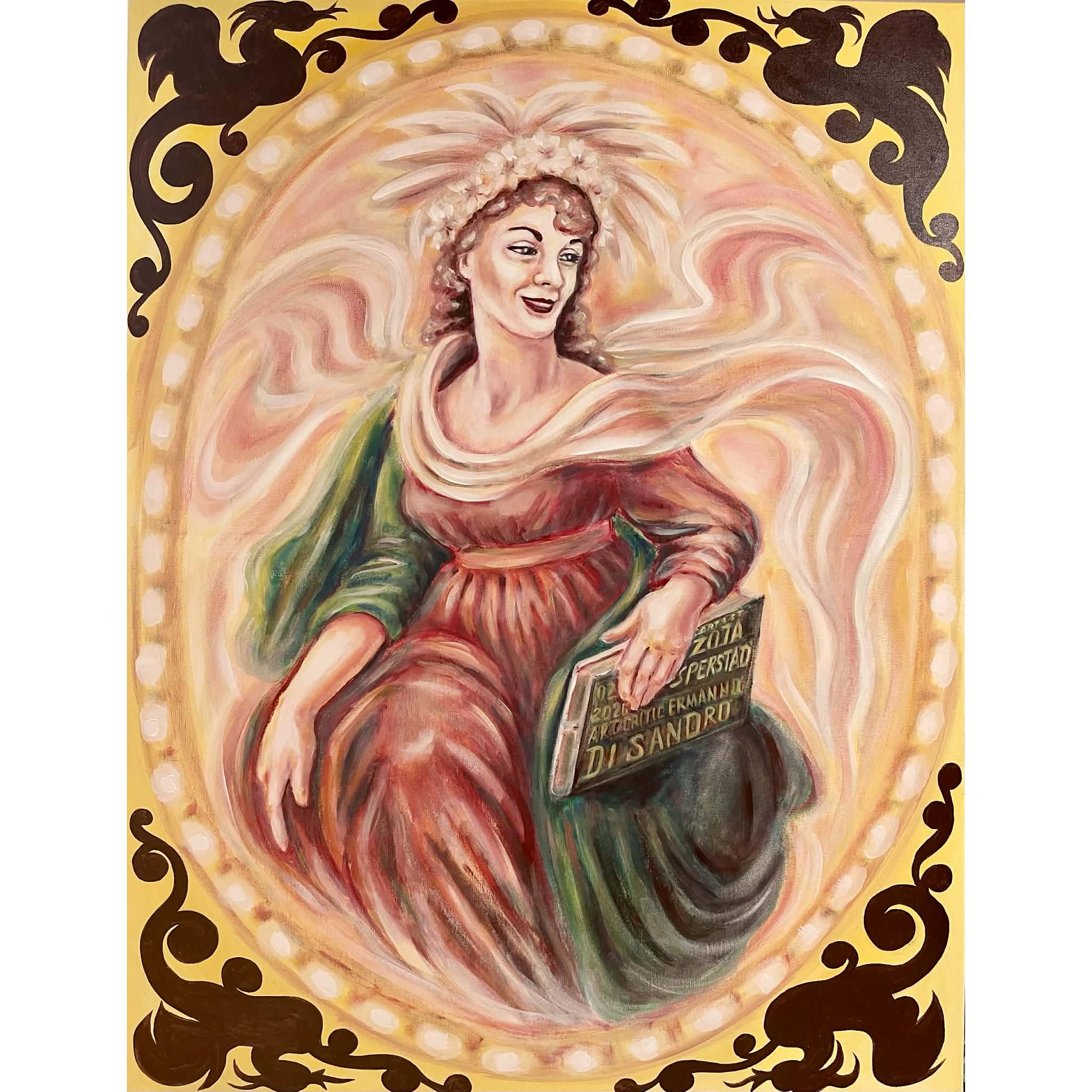 L'ispirazione di Rafael Santi per il dipinto " Teologia " sul tavolo "Signature" in Vaticano, 116x89, 01.2026, acrilico, tela