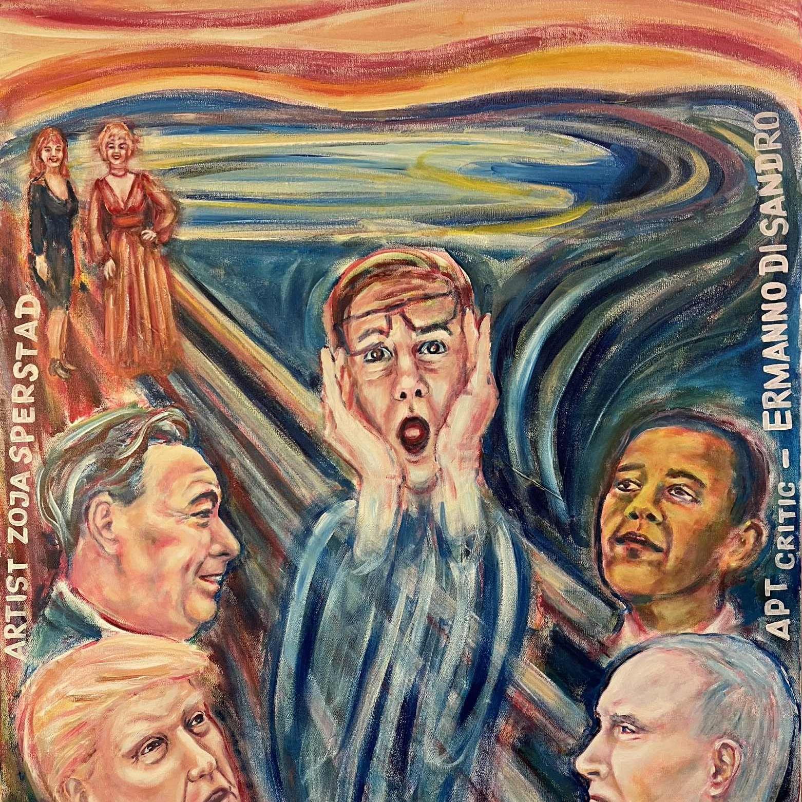 Il dipinto/ The painting / n.20 -2025. “Obama, Trump e “Amici”, 2025, 116x89, acrilico su tela.