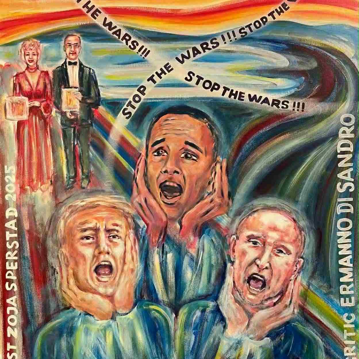 Il dipinto/ The painting n.21 -2025. “FERMIAMO LE GUERRE!!!”, 2025, 116x89, acrilico su tela