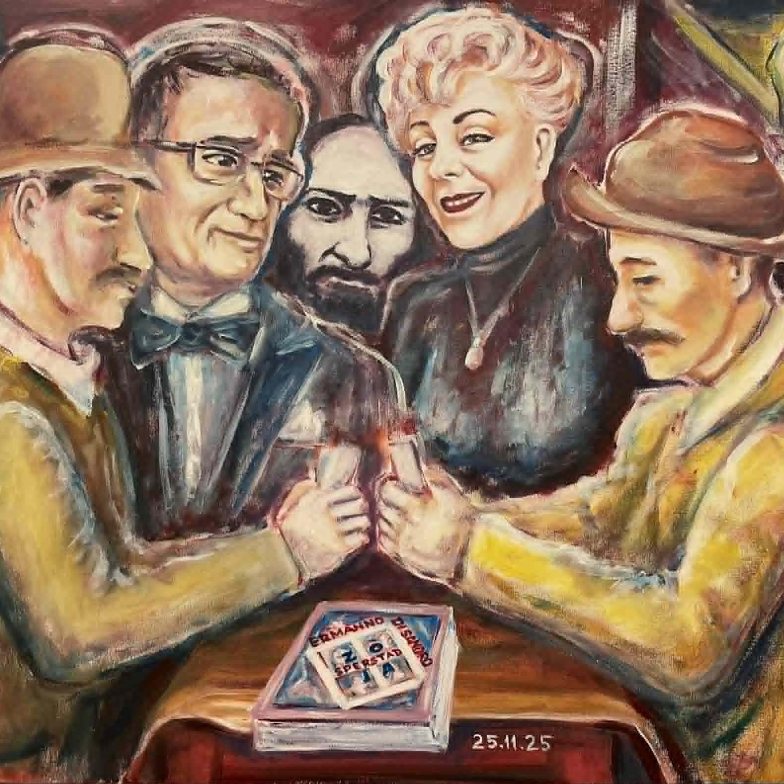 “Picasso, Ermanno, Zoja, Norma” 2025, 70x50, acrilico su tela.